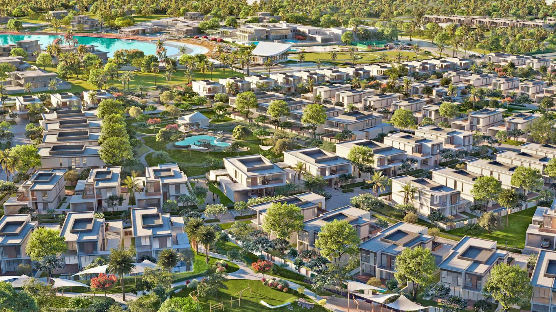 Tilal Al Ghaf is a landmark mixed-use community by Majid Al Futtaim, centred on a 40,000 sqm crystal lagoon and surrounded by verdant parkland. It combines villas, townhouses and apartments in a pedestrian friendly layout, with over 50 km of cycling and jogging trails. Residents benefit from on site schools, nurseries, and a vibrant retail and dining precinct called The Hive. Wellness is woven into every element, from yoga lawns to wellness pods. The crystal lagoon offers watersports, swimming and a beachfront style pool deck. Community clubs and event lawns host regular social and cultural activities. Green corridors connect to shaded play areas and outdoor fitness nodes. Proximity to Sheikh Zayed Road places Mall of the Emirates, Dubai Marina and Downtown Dubai within easy reach. Future plans include hotels, wellness retreats and additional educational facilities, ensuring Tilal Al Ghaf remains a self sufficient, sustainable enclave.